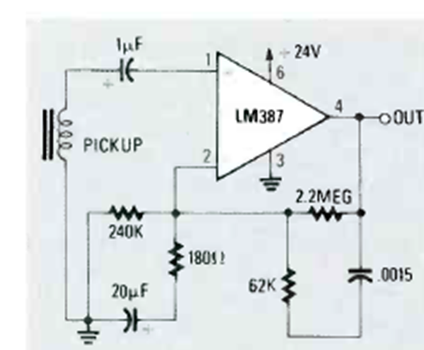 Este circuito se encontró en la revista Radio Electronics de febrero de 1990. El circuito utiliza una sola fuente de alimentación y tiene ecualización NAB.