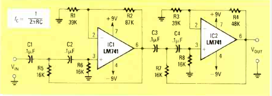 Encontramos este circuito en la edición de mayo de 1989 de la revista Radio Electronics. El circuito puede tener sus valores modificados para funcionar en otras frecuencias y la fuente de alimentación debe ser simétrica.