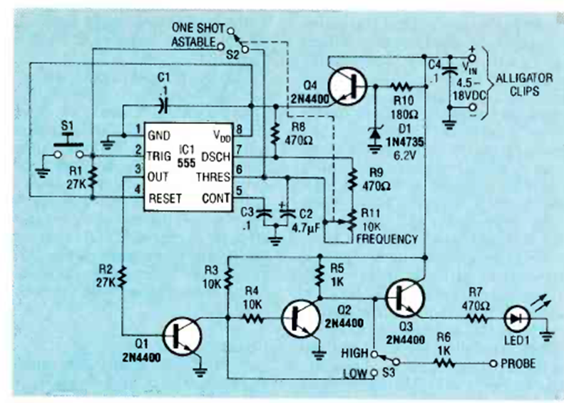 Este instrumento de prueba se encontró en la edición de abril de 1991 de la revista Radio Electronics. El circuito tiene una buena intensidad de señal.
