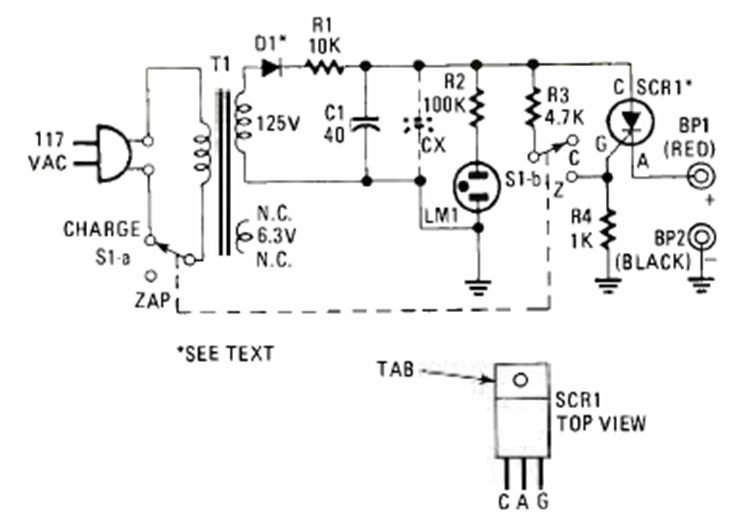 Este cargador de batería se encontró en la Electronics Experimenter Special Projects de 1983. El circuito utiliza un SCR como elemento de control.