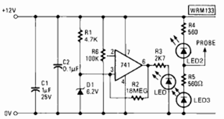 Encontrado en la revista Radio Electronics Special Projects de 1980, este circuito prueba voltajes en una instalación de automóvil.