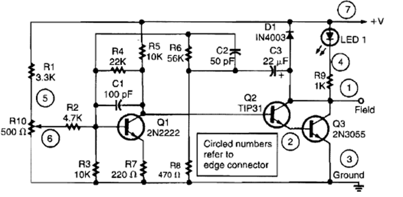 Encontrado en una Radio Electronics de los años 90, este circuito es para coches de esa época. El circuito utiliza un 2N3055 que debe estar equipado con un disipador de calor.
