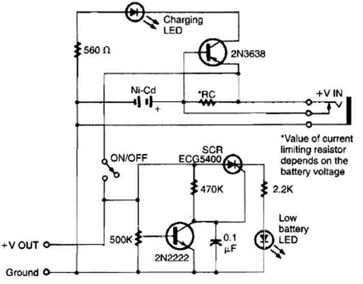 Este circuito se encontró en la revista Radio Electronics de los años 90. Es para baterías pequeñas de NiCad.