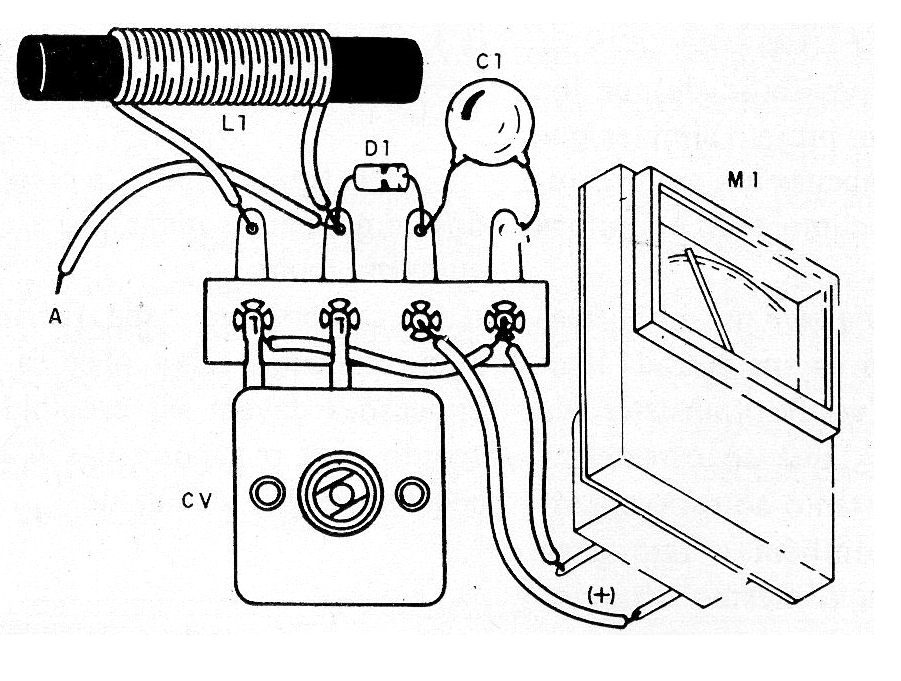 El instrumento indicador es un microamperímetro de 200 uA que se puede obtener en un amplificador o grabadora fuera de uso. C1 no es crítico y el diodo puede ser de cualquier tipo de germanio.