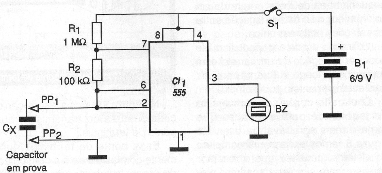 La prueba de funcionamiento es simple: basta conectar entre las puntas de prueba un capacitor en buen estado, con valor dentro del rango indicado.