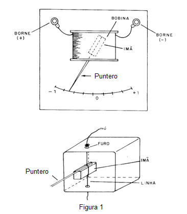 En la figura 1 tenemos el montaje completo de ese galvanómetro, tomando una base de madera de 20 X 20 cm como punto de partida.