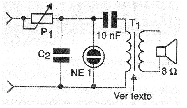 Para utilizar un altavoz, se debe emplear un pequeño transformador de salida, como se muestra en la figura 3. Este transformador, aprovechado de antiguas radios transistorizadas, debe tener un devanado primario con al menos 1 000 ohms de impedancia.