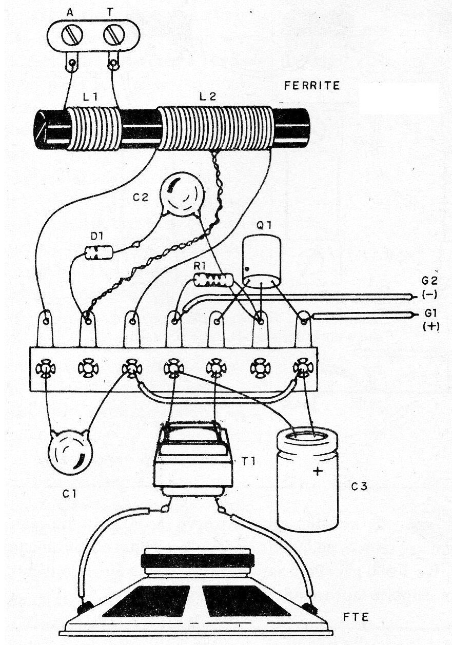 El transformador T1 es del tipo de salida encontrado en radios transistorizadas antiguas. Puede ser aprovechado de una radio antigua fuera de uso. El altavoz puede ser de cualquier tipo.