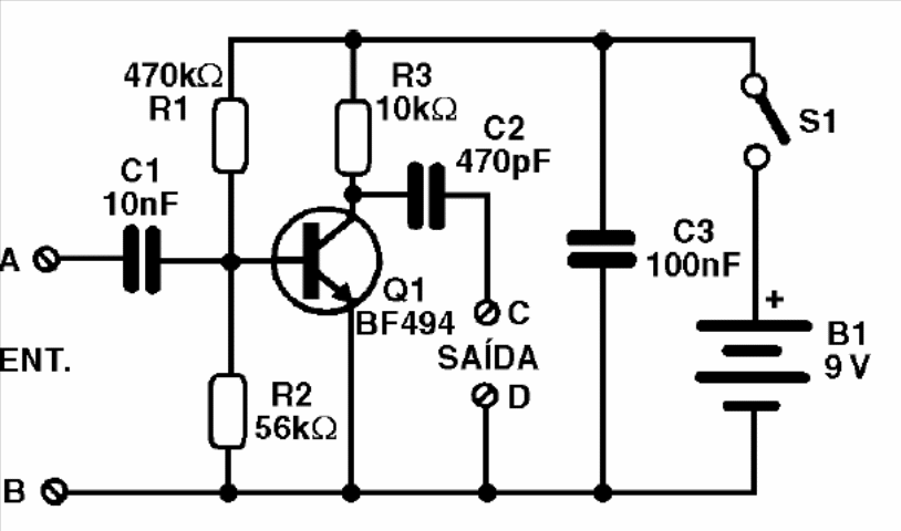 El circuito presentado puede ser intercalado entre una antena de AM para ondas medias y cortas e incluso una antena de FM y TV de VHF para aumentar las intensidades de las señales y posibilitar mejor recepción.