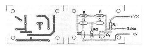 Una placa de circuito impreso para el montaje del oscilador se muestra en la figura 2, si se utiliza aisladamente.