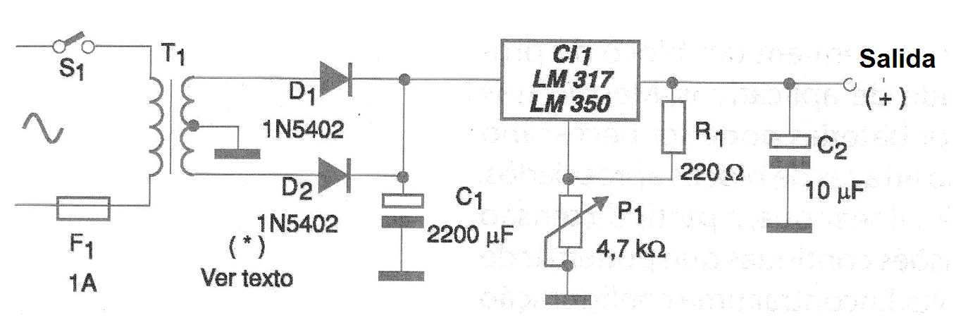 CI-1 - LM317 o LM350 - circuito integrado regulador de tensión - ver texto