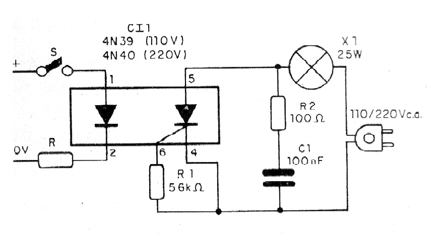 CI-1 - 4N39 (110 V) o 4N40 (220 V) - acoplador óptico con SCR