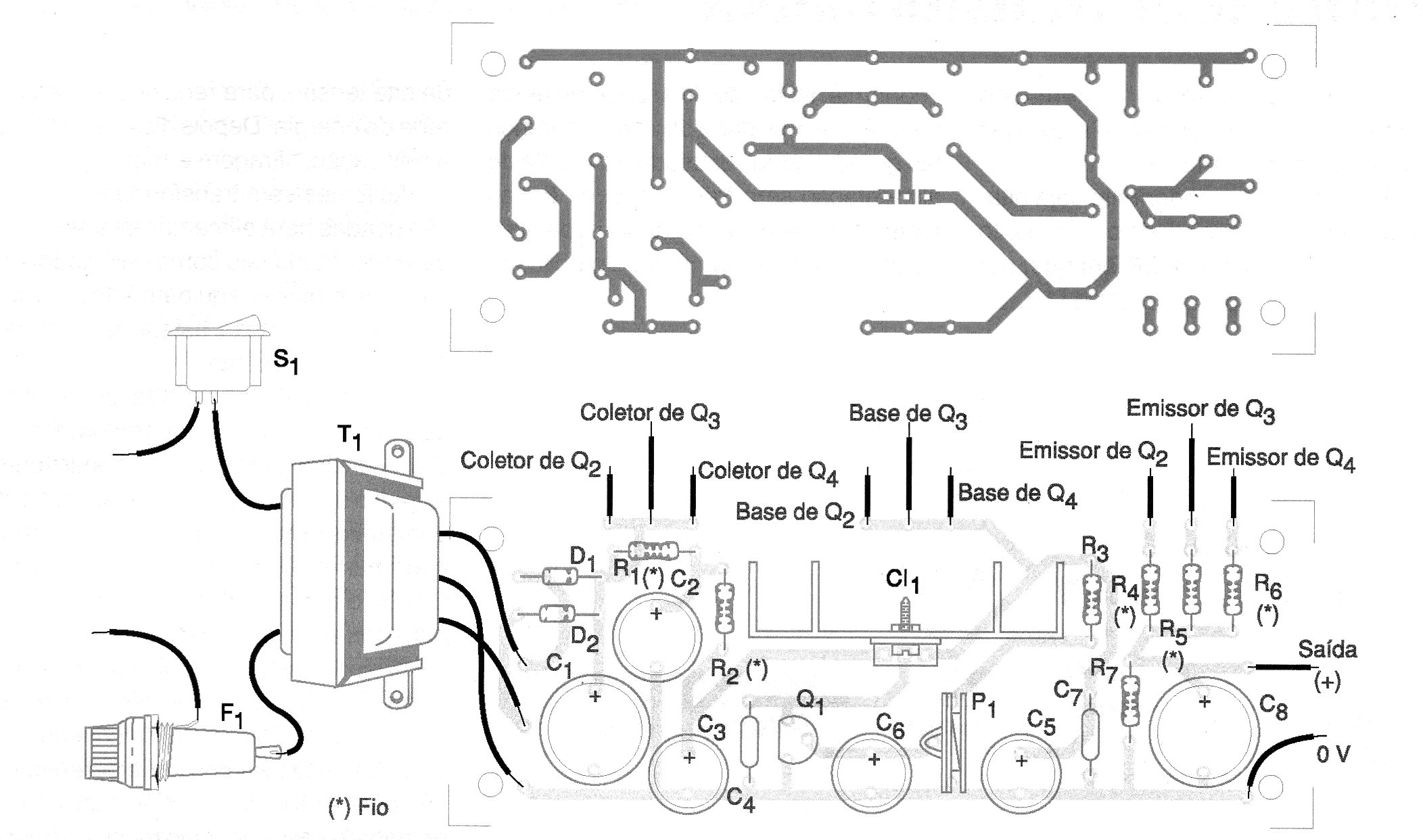 En el montaje de este tipo de fuente, el principal cuidado es usar hilos de espesor apropiados a la intensidad de la corriente que debe ser conducida.
