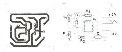 En la figura 2 tenemos una sugerencia de placa de circuito impreso para implementación del oscilador.