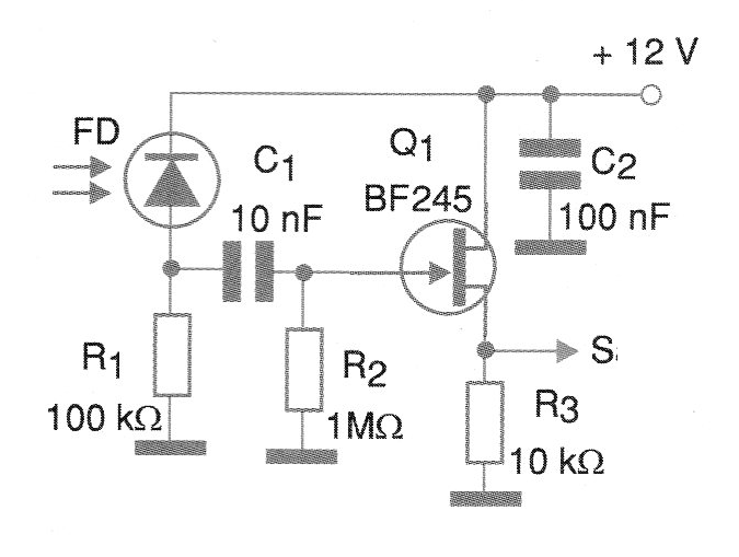 El transistor de efecto de campo de unión puede ser de cualquier tipo. Este circuito puede trabajar con señales moduladas hasta algunos cientos de quilohertz.