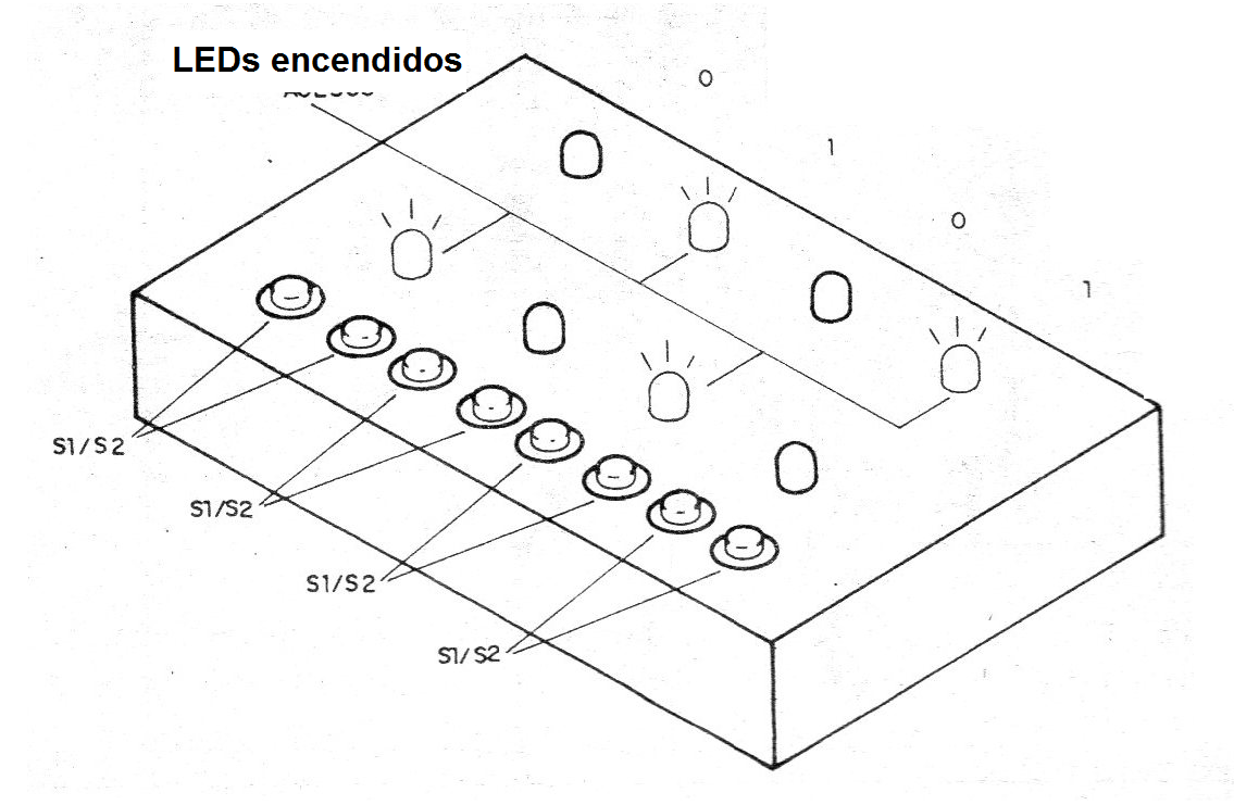 El LED 1 indica que la salida es 0, es decir, cuando está encendida la salida es cero. El LED 2 encendido indica que la salida es 1.