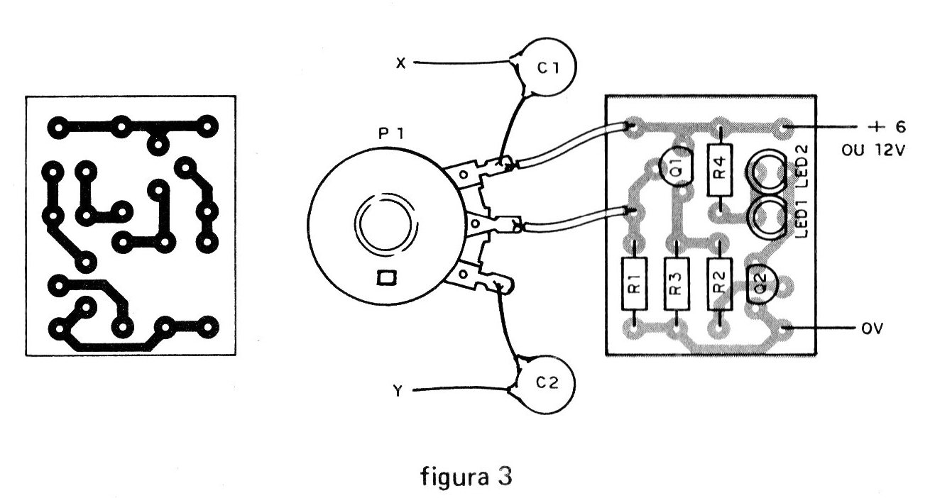 En el circuito damos los valores de los componentes para una alimentación con 6 V. Para alimentar con 12 V, en el caso de la utilización en el coche, basta con cambiar R4 a 560 ohmios.