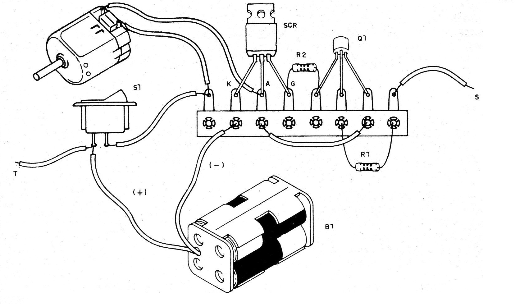 El SCR utilizado es extremadamente sensible, lo que significa una facilidad enorme para el disparo a partir de la corriente de Q1.
