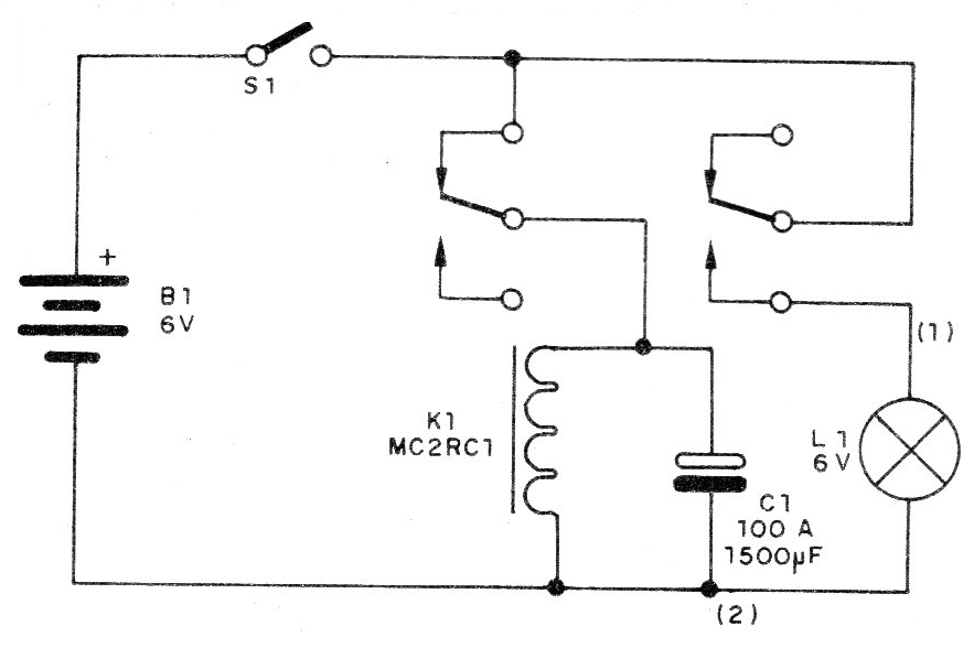 Describimos el montaje de un simple intermitente o intermitente de 6 V o 12 V, según el relé, capaz de accionar lámparas o LED de señalización.