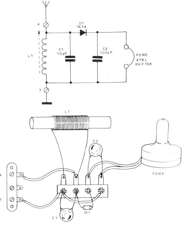 Desplazándose el bastón en el interior del tubo se hace la sintonía de la estación deseada. El auricular puede ser de cristal o una cápsula piezoeléctrica de teléfono o similar. No se deben utilizar auriculares de baja impedancia.