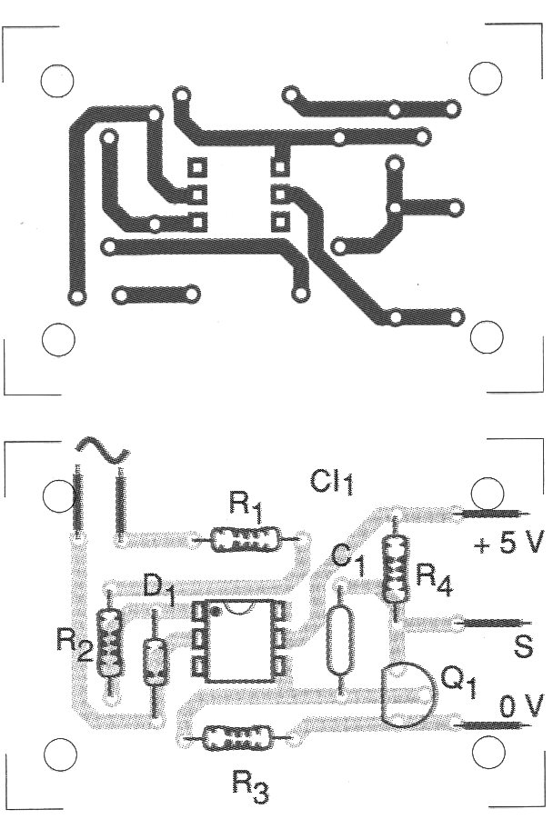 La solución aislada de la red de energía de la figura 1 permite obtener una señal de 60 Hz (o 50 Hz) a partir de esta red para excitación de circuitos lógicos TTL.