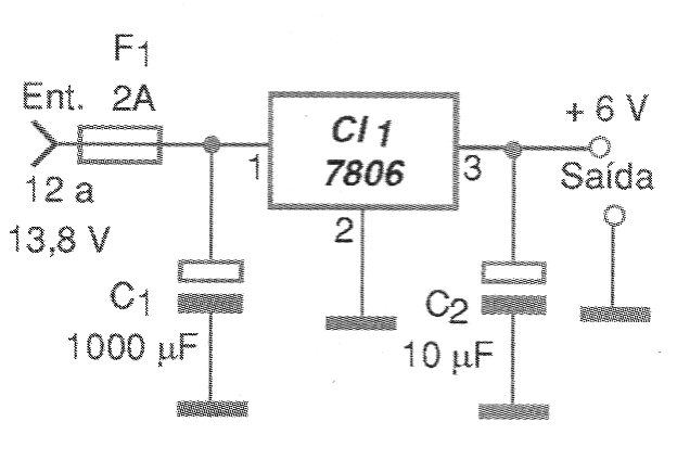 La finalidad del circuito de la figura 1 es obtener, de forma simple, una tensión de 6 V para alimentación de equipos portátiles a partir de la batería de uso automotriz.